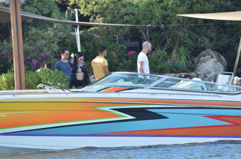 NEŞELİ HALİ DİKKAT ÇEKTİ: Kendilerini almak için iskeleye yanaşan bota binen ikiliden Boluğur, uzun zaman sonra ilk kez neşeli haliyle dikkat çekti.