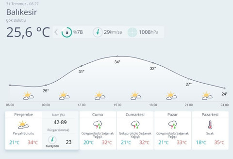 Meteoroloji'den yapılan son hava durumu tahminlerine göre; Trakya, Ege'nin kuzeyi, Batı Karadeniz'in iç kesimleri ile Doğu Karadeniz'in kıyı kesimleri gök gürültülü sağanak yağmurlu diğer bölgeler az bulutlu ve açık geçecek.Meteoroloji Genel Müdürlüğü tarafından yapılan tahminlere göre: Ülkemizin kuzey, iç ve doğu kesimlerinin parçalı, yer yer çok bulutlu, Trakya, Batı Karadeniz, Orta ve Doğu Karadeniz kıyıları ile Kocaeli, İstanbul, Sakarya, Yalova, Bursa, Balıkesir'in kuzeyi, Çanakkale'nin doğusu, Kütahya, Adana'nın kuzey ve doğusu, K. Maraş'ın batısı, Hatay kıyıları, Artvin, Kars ve Ardahan çevrelerinin yerel olmak üzere sağanak ve gök gürültülü sağanak yağışlı, diğer yerlerin az bulutlu ve açık geçeceği tahmin ediliyor. Yağışların akşam saatlerinde Tekirdağ'ın batı kesimleri ile Edirne çevrelerinde yer yer kuvvetli olması bekleniyor. Güneydoğu Anadolu’da toz taşınımı görüleceği tahmin ediliyor.Hava sıcaklığının, kuzey kesimlerde biraz azalacağı ve Ülkemiz genelinde mevsim normalleri üzerinde seyretmeye devam edeceği tahmin ediliyor. Rüzgarın genellikle kuzeyli, Ülkemizin güney kesimlerinde güneyli yönlerden hafif, ara sıra orta kuvvette, Marmara'da kuvvetli (40-60 km/saat) olarak eseceği tahmin ediliyor. İşte il il beklenen sıcaklıklar ve hava durumu tahminleri...