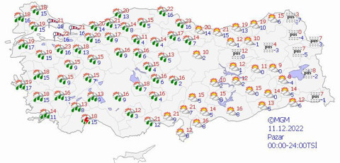 yağışlı geçeceği tahmin ediliyor. Rüzgarın kuzeybatı kesimlerinde