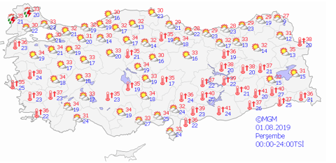 Ülkemizin kuzey kesimlerinin parçalı bulutlu, öğle saatlerinden itibaren Edirne ve Kırklareli çevreleri ile Ordu, Giresun, Trabzon, Rize ve Artvin’nin iç kesimlerinin, gece saatlerinden sonra İstanbul ve Kocaeli'nin kuzey kesimleri ile Samsun ve Sinop çevrelerinin yerel olmak üzere sağanak ve yer yer gök gürültülü sağanak yağışlı, diğer yerlerin az bulutlu ve açık geçeceği tahmin ediliyor.Hava sıcaklıkları nasıl? Hava sıcaklığında ise önemli bir değişiklik olmayacağı, sıcaklıkların, ülkemiz genelinde mevsim normalleri civarında seyredeceği belirtildi. Sıcaklıkların 35 derecelere ulaşması nedeniyle uzmanlar özellikle öğle saatlerinde güneş ışınlarından uzak kalınması konusunda uyarıda bulundu. İşte 5 günlük haritalı hava durumu raporu...