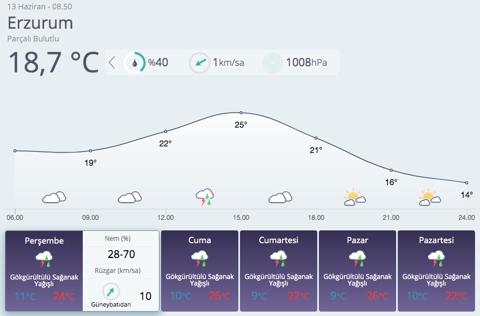 Meteoroloji'den alınan son tahminlere göre, bugün yurdun birçok kentinde sağanak yağış etkili olacak. Bazı bölgelerde kuvvetli olması beklenen yağışlarla beraber, yıldırım, dolu, yağış anında kuvvetli rüzgar, ani sel, su baskını gibi olumsuzluklara karşı da vatandaşların dikkatli olması için uyarı yapıldı. Meteoroloji Genel Müdürlüğü tarafından yapılan son değerlendirmelere göre; İç Ege, Batı Akdeniz'in iç kesimleri, Doğu Akdeniz, İç Anadolu, Karadeniz ve Doğu Anadolu'nun kuzeyi ile Sakarya ve Bilecikçevrelerinin sağanak ve gök gürültülü sağanak yağışlı, diğer yerlerin parçalı, yer yer çok bulutlu geçeceği tahmin ediliyor.Özellikle 12:00 - 18:00 saatleri arasında yağışların 32 ilde etkili olması bekleniyor. Yağışların; İç Anadolu'nun güney ve doğusu, Orta Karadeniz'in iç kesimleri, Çankırı, Sinop ve Samsun çevreleri ile Kastamonu'nun iç kesimlerinde yerel olarak kuvvetli olması bekleniyor.Yağışların yerel olarak kuvvetli olması beklendiğinden; yıldırım, dolu, yağış anında kuvvetli rüzgar, ani sel, su baskını gibi olumsuzluklara karşı dikkatli ve tedbirli olunması için uyarı yapıldı.İstanbul'da ise bugün hava güneşli ve sıcak. Cuma ve Cumartesi günü ise dün olduğu gibi lokal gök gürültülü sağanak yağışlar bekleniyor. Lokal yağışların görüleceği iki gün boyunca sıcaklık 30 derece civarında seyredecek. Pazar günü ise hava bulutlu.