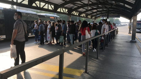 Metrobüs durağında endişelendiren görüntüler! Sosyal mesafe yok kalabalık çok