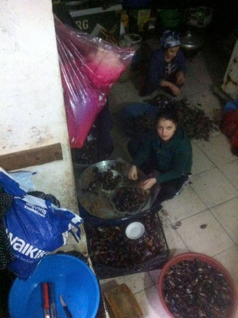 Galerinin tamamı için tıklayınızPislik içerisindeki imalathanelerde çalışanların hijyen kurallarına uymadan imalat yaptığı gözlendi. Kaplar içerisine konulan midyelerin de yerlerde bırakıldığı görüldü.