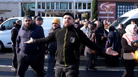 üyeleri, İBB'nin Saraçhane binası önünde toplandı. İBB'yi protesto