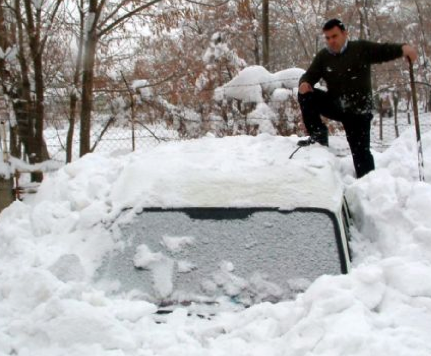 Galerinin tamamı için tıklayınızElinde kürekle saatlerce uğraşmasına rağmen, karları temizleyip minibüsünü çıkaramayan Şeref Demir, "Evimin arka bahçesindeki minibüsümü kardan çıkarmak için çaba gösterdim.