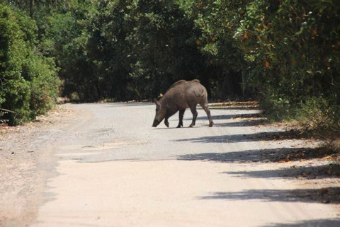 Galerinin tamamı için tıklayınızOrmanlık alandan, Torba Atatürk Caddesi'ne inen yetişkin bir yaban domuzu, bir süre yiyecek aradı.