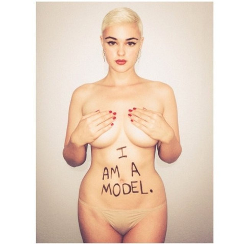 Galerinin tamamı için tıklayınızKarnına "Ben modelim" yazan genç kadın, fotoğrafı bu sözlerle yayınladı: "Ben bir modelim. NOKTA. Maalesef moda endüstrisi sizi 36 bedenin üzerindeyseniz 'büyük beden' olarak etiketliyor. Ben de hep büyük beden olarak anıldım. Bu çok kırıcı. Geç kızların zihinlerine onlara "büyük beden" diyerek zarar veriyorsunuz."