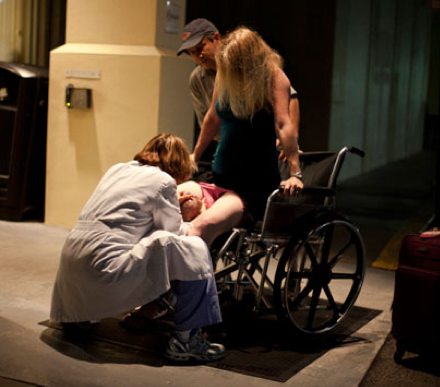 Galerinin tamamı için tıklayınızDoğum için hastaneye gelen hamile kadın hemşirenin yardımıyla