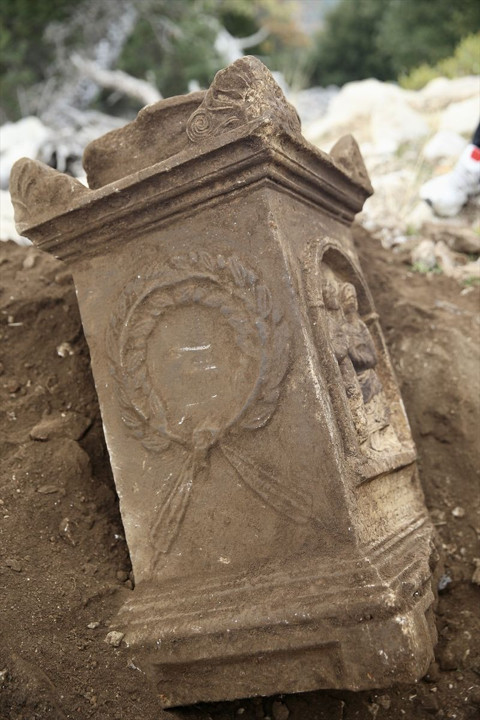 Galerinin tamamı için tıklayınızEserin Roma Dönemi'ne, milattan sonra 1. ve 3. yüzyıla ait olduğunu değerlendirdiklerini belirten Meke, "Eser, genellikle Anadolu'da görülebilen sunak tipli mezar steline bir örnek. Bu steli özel kılan üzerindeki kabartması, ikonografik betimlemeleri ve altındaki yazıttan dolayı epigrafik özelliğidir. Eserin ön yüzünde kadın ve erkek figürü bulunuyor. Bu da muhtemelen bir aile tablosu. Roma Dönemi'ndeki aile kültürü, üzerindeki kıyafetlerden o dönemdeki yaşamı ve sosyo kültürel durumu gözlemliyoruz." dedi.