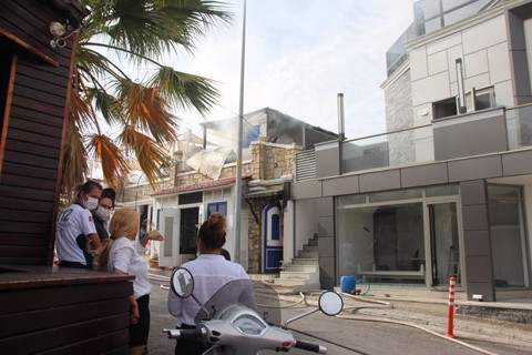 Galerinin tamamı için tıklayınızKendi dükkanı yandı: Özsert, Ortakent Mahallesi'ne giderken yoğun dumanlar görüp yardım için bölgeye geldiğinde kendi dükkanının yandığını gördüğünü söyledi.