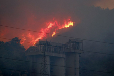 Muğla'nın Milas ilçesindeki orman yangını Kemerköy Termik Santrali'nin tel örgülerine kadar yaklaştı