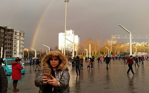 Galerinin tamamı için tıklayınızİstanbul’da gün içerisinde belirli aralıklarla yağan yağmurun ardından havada oluşan yan yana çift gökkuşağının eşsiz manzarası kendine hayran bıraktı. İnsan yoğunluğunun en fazla olduğu noktalardan olan Taksim Meydanı'nda ise gökkuşağını gören vatandaşlar fotoğraf çektirmek için adeta birbirleriyle yarışırken, bazıları ise o anı cep telefonlarına kaydetti. Taksim Meydanı'nda bulunan vatandaşlar yaklaşık 10 dakika boyunca seyredilen gökkuşağının keyfini çıkarttı.
