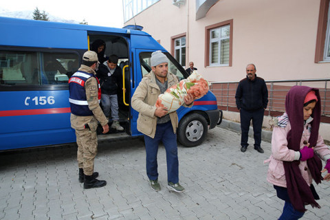 Galerinin tamamı için tıklayınızOtobüsle ilçe merkezine götürülerek acil ihtiyaçları karşılanan göçmenler, ardından İlçe Devlet Hastanesinde sağlık taraması yapılarak kimlik kayıtları için kent merkezindeki bir spor salonuna götürüldü.