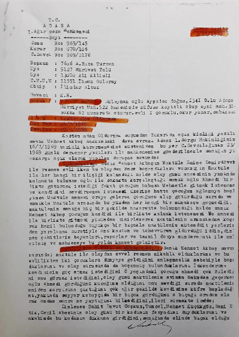 Galerinin tamamı için tıklayınızSanık Mehmet Akbaş ise savunmasında, "Yolda karşılaştığım Ahmet'e sarılıp kucağıma aldım. Onu yanımda götürmek istedim. Oğlum gelmek istemedi, ağladı, bu sırada annesi elinde kalınca bir sopayla gelip, bana saldırdı, çok ağır küfürler etti. O sırada seyyar kebapçıda gördüğüm bıçağı aldım. Ondan sonrasını hatırlamıyorum" dedi.