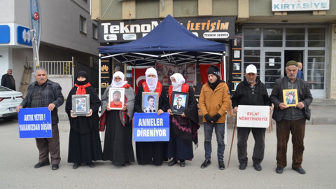 Abone olMuş'ta çocukları terör örgütü PKK tarafından kaçırılan aileler, DEM Parti İl Başkanlığı binası önündeki eylemlerine devam etti.