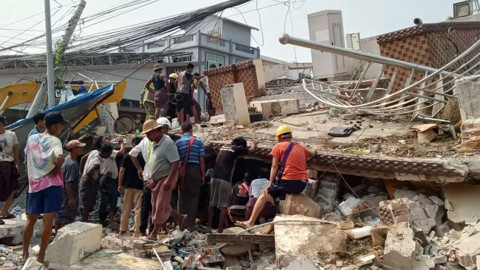 Sabah Myanmar'ın orta kesimindeki Sagaing bölgesi yakınlarında 7,7 ve 6,4 büyüklüğünde iki deprem meydana gelmişti.