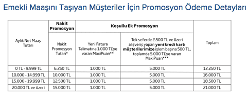 promosyona ek, fatura talimatı şartıyla 1000 TL maxi puan, Tek