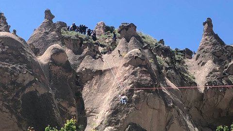 Nevşehir'de bir sıcak hava balonunun zorunlu iniş yaptığı bildirildi.Valilikten yapılan yazılı açıklamada, saat 05.00'te Çavuşin bölgesinden havalanan sıcak hava balonunun, uçuş süresinin dolması nedeniyle saat 06.00 sıralarında Zelve Ören Yeri yakınlarında bir yamaca zorunlu iniş gerçekleştirdiği belirtildi.Açıklamada, şu ifadelere yer verildi: "Balon, hava koşulları ve uçuş süresi dikkate alınarak pilotun inisiyatifiyle kontrollü şekilde iniş yapmıştır. Söz konusu olayda herhangi bir yaralanma meydana gelmemiştir. Olayın ardından balonda bulunan yolcularımız, AFAD ekiplerimizin hızlı müdahalesiyle sağlıklı şekilde tahliye edilmiştir. Konuyla ilgili gerekli idari inceleme başlatılmıştır."Öte yandan, AFAD ve itfaiye ekipleri, bir peribacasının yamacında mahsur kalan turistleri halat yardımıyla indirdi.
