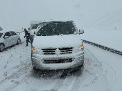 Nisan ayında şaşkına çeviren görüntüler! Yoğun kar yağışı etkili oluyor araçlar yollarda kaldı