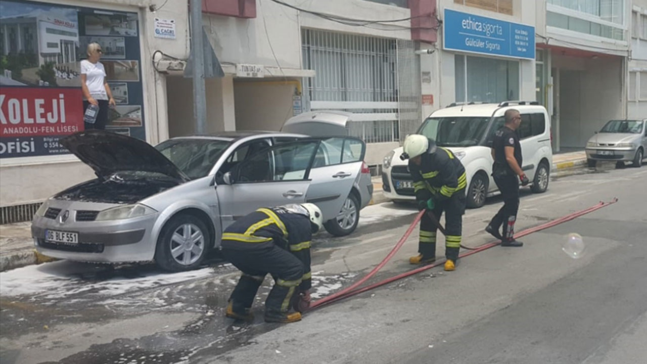 Aydın Caddesi'nde park halindeki 06 BLF 551 plakalı bir otomobilin motor kısmında henüz belirlenemeyen nedenle yangın çıktı. İhbar üzerine olay yerine gelen itfaiye ekipleri, yangını söndürdü. O sırada yanan aracının karşısındaki parkta bulunan araç sahibi Mustafa Gündüzoğlu da olay yerine geldi.Müşteri İzmir'den gelmişti: Büyük üzüntü yaşayan Gündüzoğlu'nun, aracını satmak için İzmir'den gelen Nuriye Beko ile anlaştığı, satış işlemleri için öğle arasında olmasından dolayı noterin açılmasını bekledikleri öğrenildi.Nuriye Beko, gazetecilere, yanan otomobili satın almak için İzmir'den geldiğini söyledi.Öğle arası olduğu için kafede bekliyorlardı: Aracı park ettikten sonra kafeye gittiklerini anlatan Beko, "Öğlen arası olduğu için noterin açılmasını bekliyorduk. Kafedeki garson bir aracın yandığını söyleyince satın almak için anlaştığımız aracı fark ettik. Yarım saat sonra notere gidip aracı üzerimize alacaktık, şaşkın ve çok üzüntülüyüz." diye konuştu.