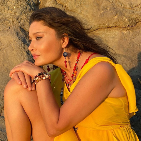 Sarı elbisesi ile kamera karşısına geçen Nurgül Yeşilçay fotoğrafına "Taze fotolar getirdim" notunu düşmüştü.