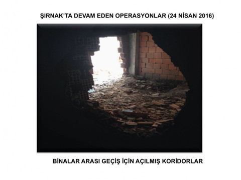 EVLERE TÜNEL AÇTILAR Teröristlerin vatandaşlara ait evlere zarar verdikleri, duvarlardan geçitler yaparak tüneller açtıkları belirlendi.