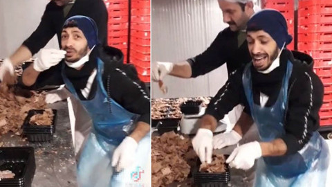 Sosyal medya platformu TikTok'ta yapılan paylaşımda, hazır döner paketleyen şahıslardan birinin eti ağzına sürdüğü görülmüştü.2 kişinin, maskesiz ve hijyene aykırı şekilde hareketlerde bulunarak çektikleri videoya yorum yağdı. O İĞRENÇ GÖRÜNTÜLER İÇİN TIKLAYIN...Tik Tok uygulamasından paylaşılan görüntülerin tepkilere neden olması üzerine, Tarım ve Orman Bakanlığı devreye girdi.Firmaya ve görüntüleri çeken çalışanlara ayrı ayrı ceza uygulandı.Bakanlıktan yapılan yazılı açıklamada şöyle denildi: Tik Tok üzerinden yapılan paylaşım sonucu, toplumda infiali neden olan Kırklareli'ndeki söz konusu işletme tespit edilmiş, denetimler yapılmış, 5996 sayılı Veteriner Hizmetleri, Bitki Sağlığı, Gıda ve Yem Kanunu kapsamında gerekli cezai işlemler uygulanmış ve Cumhuriyet savcılığına suç duyurusunda bulunulmuştur"Etler imha edilecek: Ayrıca denetimlerde, 100 kilogram ete imha edilmek üzere el koyulurken, görüntülerdeki 2 kişiye koronavirüs tedbirleri kapsamında maske takmadıkları gerekçesiyle 900'er lira da ceza verildi.Bir kullanıcı "Önlük diye üstüne geçirdiği çöp poşeti, o iğrenç ağzına sürdüğü gıda... Neresinden tutsanız rezillik, gerçekten midem bulandı" ifadelerini kullanmıştı.Diğer bir kullanıcısı ise "Bir hazır döner işletmesinde çekilmiş bu videoda dönerlerin paketlere dolum yapıldığı süreçte yaşananlar görünüyor. Rezillik, iğrençlik. En ağır ceza verilmediği sürece bu TikTok rezaletleri bitmez. Bu adamlara ayrı ağır bir ceza, işletmeye de ayrı ağır bir ceza vereceksiniz ki işletme sahibi her türlü işletmesini böyle başıboş adamlara bırakmaya korkacak" sözlerini söylemişti.