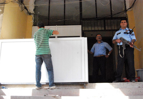 Galerinin tamamı için tıklayınızBir süre önce PKK'lıların silahlı ve bombalı saldırı düzenlediği AK Parti İl Başkanlığı binası, önüne kurulan siperlerin basında yer alması üzerine İl Emniyet Müdürlüğü açıkta görünen kum torbalarıyla yapılan siperlerin çevresini plastikle kaplattı.