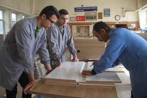 Galerinin tamamı için tıklayınızOkulumuzda, öğretmenler ve öğrenciler ile beraber her türlü büro mobilyaları, dolaplar, masalar, ana sınıfı ürünleri ve öğrenci sıraları imal edilmektedir.Öğretmenlerimizle beraber yaklaşık her yıl 30 öğrencimiz sadece mobilya ve iç mekan tasarımı alanında üretime katkıda bulunmaktadır. Üretim yapan bu öğrencilerimiz hem teorik eğitim almakta hem de pratik eğitimini de atölyelerimiz de yapmaktadır. Bizler teminlik konusunda bazen sıkıntı yaşasak dahi döner sermaye çalışmalarından dolayı öğrencilerimiz bu teminlik sıkıntısını yaşamamaktadır.