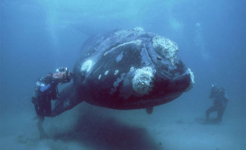 Galerinin tamamı için tıklayınızGüney Atlantik suları, Arjantin'in patagonya açıkalrında karşılaştıkları çok nadir görülen düz balina ve diğer iki dalgıç arkadaşıyla birlikte Cranston.