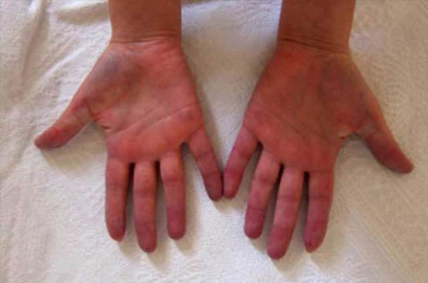 Galerinin tamamı için tıklayınızDolaşım nedeniyle deride renk değişiklikleri olur. Soluk ve mavimsi bir renk hakimdir, özellikle dudaklarda ve tırnak yataklarında daha belirgindir.