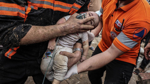 Galerinin tamamı için tıklayınızBombalar nedeniyle yıkılan evlerin enkazı altında kalanlar Filistin Sivil Savunma ekiplerinin çalışmaları sonucu sağ olarak kurtarıldı.