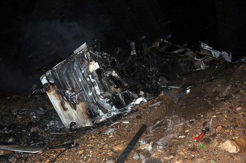 Galerinin tamamı için tıklayınızYere çakılan TIR, bir anda alev alarak, yanmaya başladı. Kupa kısmında başlayıp, dorseodeki ipliklere sıçrayan yangın nedeniyle TIR, alev topuna döndü. Vatandaşların ihbarı üzerine kaza yerine sevk edilen itfaiye ekipleri, alev alev yanan TIR'ı güçlükle söndürdü.