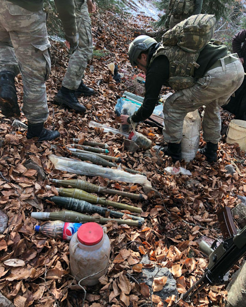 OSMANİYE'de, Amanos Dağı eteklerinde terör örgütü PKK'ya ait sığınak bulundu. Sığınakta roketatar, havan, 2 bin 582 adet tüfek mühimmatı, el yapımı patlayıcı ve 53 kilo amonyum nitrat ile yaşam malzemeleri ele geçirildi. Osmaniye İl Jandarma Komutanlığı Özel Harekât Tabur Komutanlığı ekiplerince, Amanoslar bölgesinde, bölücü terör örgütü PKK'nın kış üslenmelerinin belirlenmesi, mağara, sığınak ve erzak depolarının imha edilmesine yönelik operasyonları sürüyor. Merkeze bağlı Yarpuz Köyü sınırları içerisinde bulunan Kokarca Sırtı bölgesinde sürdürülen operasyon kapsamında, bölücü terör örgütü mensupları tarafından kullanıldığı değerlendirilen sığınak tespit edildi. Sığınakta yapılan aramada, 6 anti tank sevk fişekli roketatar silahı mühimmatı, 4 sevk fişeksiz roketatar silahı anti personel mühimmatı, 53 kilo amonyum nitrat, 10 adet roketatar silahı sevk fişeği ve kutusu, 3 el bombası fünyesi, 2 adet 60 mm'lik havan tahrip mühimmatı, basmalı EYP düzeneği, 5 litre bidon içerisinde etrafına tesiri güçlendirmek amacıyla çivi bantlanmış amonyum nitrat, fünye girişi olan eyp düzeneği, çabuk nişan alma aleti, fotoğraf makinesi, Kanas silahına ait keskin nişancı dürbünü, gündüz el dürbünü, batarya havzası, 300 gram çivi, akü şarj aleti, akımölçer cihazı, 700 metre kablo, 20 adet büyük pil, 9 adet anahtar takımı, tornavida, 650 adet 7,62 mm bixi silahı mühimmatı, 900 adet 7,62 mm kaleşnikof silahı mühimmatı, Bin 32 adet 5,56 mm m-16 silahı fişeği, 4 av tüfeği fişeği, çeşitli giyim ve yaşam malzemeleri ele geçirildi. Malzemelerin bazıları Jandarma Kriminal Daire Başkanlığı'na incelenmek üzere gönderilirken, taşınması ve bulundurulması yasak olanlar da yerinde imha edildi. Jandarma Özel Harekat Tabur Komutanlığı ekiplerinin bölgedeki arama tarama faaliyetlerinin devam ettiği bildirildi.