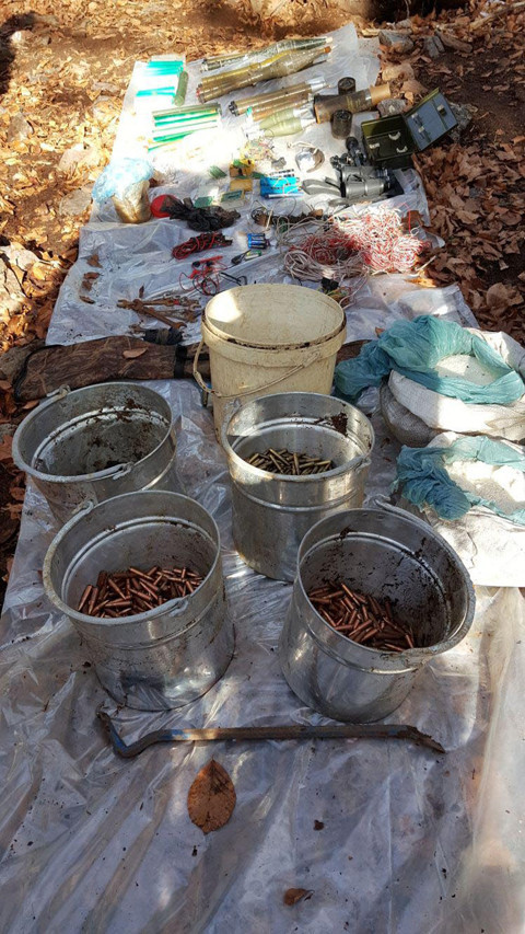 OSMANİYE'de, Amanos Dağı eteklerinde terör örgütü PKK'ya ait sığınak bulundu. Sığınakta roketatar, havan, 2 bin 582 adet tüfek mühimmatı, el yapımı patlayıcı ve 53 kilo amonyum nitrat ile yaşam malzemeleri ele geçirildi. Osmaniye İl Jandarma Komutanlığı Özel Harekât Tabur Komutanlığı ekiplerince, Amanoslar bölgesinde, bölücü terör örgütü PKK'nın kış üslenmelerinin belirlenmesi, mağara, sığınak ve erzak depolarının imha edilmesine yönelik operasyonları sürüyor. Merkeze bağlı Yarpuz Köyü sınırları içerisinde bulunan Kokarca Sırtı bölgesinde sürdürülen operasyon kapsamında, bölücü terör örgütü mensupları tarafından kullanıldığı değerlendirilen sığınak tespit edildi. Sığınakta yapılan aramada, 6 anti tank sevk fişekli roketatar silahı mühimmatı, 4 sevk fişeksiz roketatar silahı anti personel mühimmatı, 53 kilo amonyum nitrat, 10 adet roketatar silahı sevk fişeği ve kutusu, 3 el bombası fünyesi, 2 adet 60 mm'lik havan tahrip mühimmatı, basmalı EYP düzeneği, 5 litre bidon içerisinde etrafına tesiri güçlendirmek amacıyla çivi bantlanmış amonyum nitrat, fünye girişi olan eyp düzeneği, çabuk nişan alma aleti, fotoğraf makinesi, Kanas silahına ait keskin nişancı dürbünü, gündüz el dürbünü, batarya havzası, 300 gram çivi, akü şarj aleti, akımölçer cihazı, 700 metre kablo, 20 adet büyük pil, 9 adet anahtar takımı, tornavida, 650 adet 7,62 mm bixi silahı mühimmatı, 900 adet 7,62 mm kaleşnikof silahı mühimmatı, Bin 32 adet 5,56 mm m-16 silahı fişeği, 4 av tüfeği fişeği, çeşitli giyim ve yaşam malzemeleri ele geçirildi. Malzemelerin bazıları Jandarma Kriminal Daire Başkanlığı'na incelenmek üzere gönderilirken, taşınması ve bulundurulması yasak olanlar da yerinde imha edildi. Jandarma Özel Harekat Tabur Komutanlığı ekiplerinin bölgedeki arama tarama faaliyetlerinin devam ettiği bildirildi.