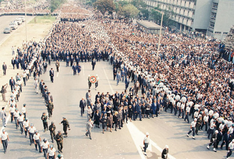 Galerinin tamamı için tıklayınızCumhurbaşkanlığı arşivinden seçilerek, sitenin "Köşk Arşivinden" bölümüne eklenen fotoğrafların ilkinde merhum Özal, eski Başbakanlardan Adnan Menderes ile bakanlar Fatin Rüştü Zorlu ve Hasan Polatkan'ın naaşlarının, İstanbul'daki Anıt Mezar'a nakli dolasıyla 17 Eylül 1990'da düzenlenen törende görülüyor.