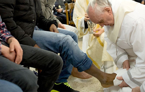 Galerinin tamamı için tıklayınızPapa Franciscus, ıslahevinde yaşları 14 ile 21 arasında değişen 2'si kız 12 tutuklunun ayağını yıkadı ve öptü.