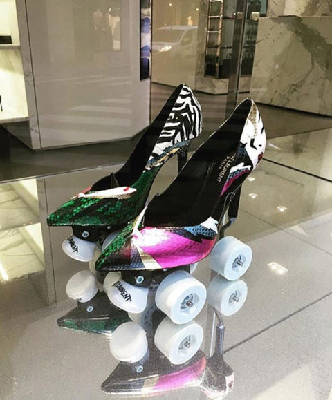 Gazete Habertürk'te yer alan habere göre Belçikalı tasarımcı Anthony Vaccarello’nun kreatif direktörlüğünü üstlendiği sonbahar sezonunun ilk aksesuvarları arasında dikkat çeken 8 santimetre yükseklikteki topuklu paten (skate-stiletto) yılan derisinden yapıldı. 1200 dolardan satışa çıkarılacak olan stilettolar, ortalama bir patenin de 20-30 misli fiyata sahip. Ayakkabılarda, klasik patenler gibi fren balataları var ve bu balatalar tekerleklere monte edilmiş. Patenli ayakkabılar yoğun ilgi görüyor…