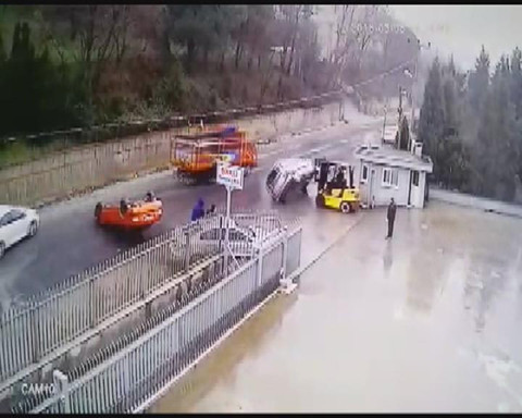 Galerinin tamamı için tıklayınızPatronun sinirlenerek park edilen iki otomobili forkliftle kaldırarak yola fırlatması güvenlik kameralarına saniye saniye yansıdı. O sırada yoldan araçların geçtiği ve güvenlikçi ve diğer çalışanların olayı izlediği de kameraya yansıyor. Bununla yetinmeyen A.D.'nin tekrar gelerek iki otomobili de forkliftle itip yerde bir süre sürüklediği görülüyor.