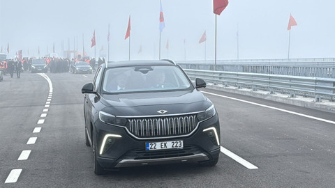 Ardından direksiyonuna geçtiği Togg'la bir süre yeni yolda ilerleyen Bakan Uraloğlu, yolun yapımında çalışan işçilerle anı fotoğrafı çektirdi.