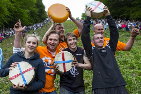Galerinin tamamı için tıklayınızYokuştan aşağıya yuvarlanan peyniri yakalama mücadelesi veren