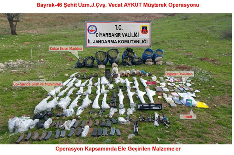 Galerinin tamamı için tıklayınızValilikten yapılan açıklamada, Lice ilçesi güney kırsalında barınan ve aralarında üst düzey örgüt yöneticilerin de bulunduğu değerlendirilen teröristlerin etkisiz hale getirilmesi, teröristlere ait silah ve mühimmatın ele geçirilmesi, operasyon bölgesi içerisinde saklanan uyuşturucu ve bunları gizleyenlerin bulunması,