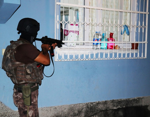 Galerinin tamamı için tıklayınızVİLLA TUZAKLANMAMIŞ Adana'da merkez Çukurova İlçesi'ndeki aylık 2 bin 500 liraya kiralanan lüks villaya yapılan operasyonun yeni görüntüleri de ortaya çıktı. Bu görüntülerde polisler içeride teröristlerin bulunması olasılığını dikkate alarak şafak vakti eve sessiz bir şekilde yaklaşıyor. Özel harekat polisleri lüks villanın kapısını 'koç başı' ile kırıp içeri giriyor. Patlayıcı tuzaklaması olasılığına karşı önlem alarak villaya giren polisler bütün odaları gezdikten sonra cephaneliğin olduğu bodrum kattaki mühimmatları buluyor. Villada bomba tuzaklaması olmadığını anlaşılınca ekipler malzemelere el koyuyor.