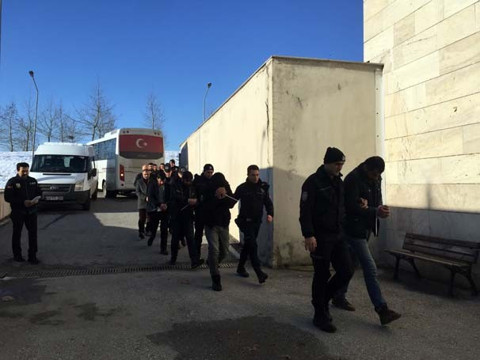 Sakarya’da PKK terör örgütüne yönelik yürütülen soruşturma kapsamında gözaltına alınan 8 şüpheli adliyeye sevk edildi. Operasyon anı kameralara saniye saniye yansıdı. Sakarya Cumhuriyet Başsavcılığı Özel Soruşturma Bürosunca terör örgütü PKK'ya yönelik yürütülen soruşturma kapsamında Sakarya İl Emniyet Müdürlüğü Terörle Mücadele Şube Müdürlüğü (TEM) ve Özel Harekat Şube Müdürlüğü ekipleri belirlenen adreslere eş zamanlı operasyon yapmış, operasyon kapsamında 8 şüpheli gözaltına alınmıştı. İkametlerde yapılan arama da çok sayıda örgütsel doküman ele geçirilmişti. Aralarında Halkların Demokratik Partisi (HDP) Sapanca İlçe Başkanı Ercan Tepe, Adapazarı İlçe Başkanı M.Hakkı Sonsuz, üniversite öğrencileri M.O, M.N.A ile M.S.Ç, Z.K, M.G. ve K.K. alınan sağlık raporunun ardından adliyeye sevk edildi.