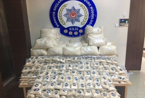 Galerinin tamamı için tıklayınızTerör örgütü, Afrin'in İki Adam mevkiinde kurduğu tesiste üretilen hapları kaçakçılar vasıtası ile Türkiye’ye soktuktan sonra Afrika ülkelerine gönderme planları yaptı. Türkiye’ye sokulduktan sonra Kilis-Mersin Taşucu Limanı- Suudi Arabistan hattından Afrika’ya götürülmek istenilen haplara yönelik sıkı tedbirler aldı. Kilis KOM Şubesi, son bir yılda yaptığı 11 planlı operasyonla PYD/YPG’ye ait 14.5 milyon adet hapı ele geçirdi. Hapların piyasa değerinin 300 milyon liranın üzerinde olduğu öğrenildi.