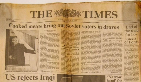 Galerinin tamamı için tıklayınızKapsüle ayrıca gömüldüğü tarihi göstermek amacıyla o günün Times gazetesinin de konulduğu öğrenildi. O günün gazetesinin ilk sayfasında "İsyancılar yaklaşırken ABD Irak savaş uçaklarının talebini reddetti" ile "Pişmiş etler, Sovyet seçmenleri dışarı çıkardı" gibi haberlerin yer aldığı belirtildi.