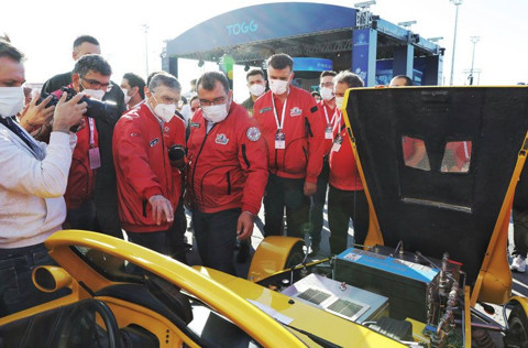 Galerinin tamamı için tıklayınızProf. Dr. Sancar, Bursa Teknik Üniversitesi’nden gençlerin 'Sancar' adını verdiği elektrikli aracı inceledi ve araç hakkında bilgi aldı. Gençlerin ısrarıyla aracın üzerine imzasını atan Sancar’ın araca isminin verilmesi konusunda izin verdiği ortaya çıktı. Aracı tanıtan gençlerden biri, “Daha önce biz mailleşmiştik, görüşmüştük. Yaptığımız araca sizin adınızı vermek için izin istemiştik. 'Sancar' 100 kilometre hıza ulaşabiliyor” dedi.