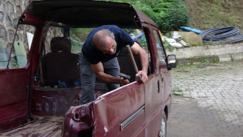 Galerinin tamamı için tıklayınızKafasını tavan vurunca sinirden aracının tavanını kestiğini belirten Ömer Deniz “Çay çiftçisiyim. Arabama çay koyarken kafam tavanına vuruyordu. Çay koymak zor oluyordu. 8–10 bez çay anca sığıyordu arabaya. Bir gün sinirlendim ve aracımın üstünü kestim." dedi.