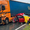 Otomobil, Rize yönüne giden D.M. idaresindeki HR-822-HH plakalı tıra çarptı.