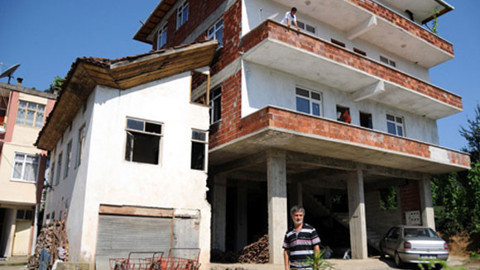 Rize’nin İyidere İlçesi’nde dededen kalma yığma taş evinin yerine yenisini yapmaya karar veren ancak tarihi özelliği olan evi de yıkmaya gönlü razı gelmeyen 75 yaşındaki Nurettin Katırcı ilginç bir çözüm buldu. İki katlı yeni evini eskisini içerisine alacak şekilde inşa etti. Hazar Mahallesi’nde yaşayan Nurettin Katırcı dededen kalma 80 yıllık yığma taş evin yerine yeni bir ev yapmaya karar verdi. Ancak dede yadigarı evi yıkmaya gönlü razı gelmeyen, ev yapacak başka arazisi de oylmayan Katırcı düşündü taşındı. Rize'ye has yaklaşımla ilginç bir çözüm yolu buldu. Önce tek katlı eski evin çatısının bir bölümünü yıkan Katırcı, sonra da eski evi içerisine alacak şekilde iki katlı bina yaptı. Ancak yığma taş evin kalan çatı kısmı yeni evin birinci katının balkonunun önüne set çekti. Eski evin yerine yeni ev yapmaya karar verdiğini ancak tarihi evi yıkmak istemediğini anlatan Katırcı, “Dede evimiz olduğu için yıkmak istemedim. Böyle bir çözüm buldum. Evi yıkmayı da düşünmüyorum. Eski evin çatısı birinci katın önünü kapatıyor. Belki çatıyı ileride yıkarım” dedi. Rize’de benzer bir olay Pazar İlçesi'nde yaşanmıştı. İki kardeşe ait 120 metrekarelik baba evi, çocukları tarafından ortadan ikiye bölünerek paylaşılmış, evin kendilerine ait 60 metrekarelik bölümünü yıkıp yandaki arazileri de kullanan bir kardeşin çocukları 3 katlı bina inşa ederken, diğer kardeşin çocukları da evin geri kalan bölümünü odunluk olarak kullanmaya başlamıştı.